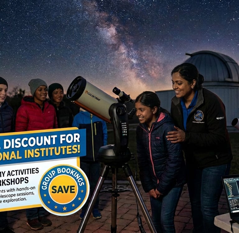 Cloud Cover: Astronomical viewing is weather-dependent; if clouds block visibility, we will extend the indoor interactive session.