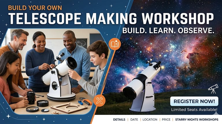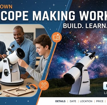 Discover the wonders of the universe from the ground up by joining our hands-on Telescope Making Workshop, where science meets craftsmanship. This immersive session guides you through assembling your very own high-quality telescope. Whether you are a curious beginner or a seasoned stargazer, you will walk away with a personal instrument and the specialized skills to navigate the night sky with confidence.