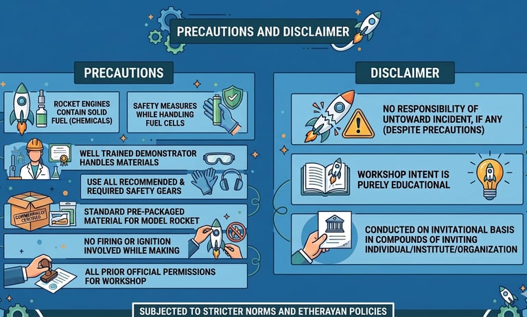 Exclusive Handling: Only the instructor is permitted to handle, assemble the rocket and solid fuel motors. Participants must not touch any equipment or chemical components.